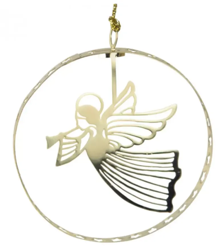 Ange De Noël Volant Dans Une Déco De Sapin En Metal Dore Ronde.