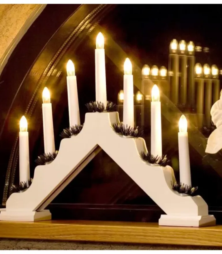 Chandelier De Noël Pyramide En Bois A Bougie Electrique, Couleur Blanc.