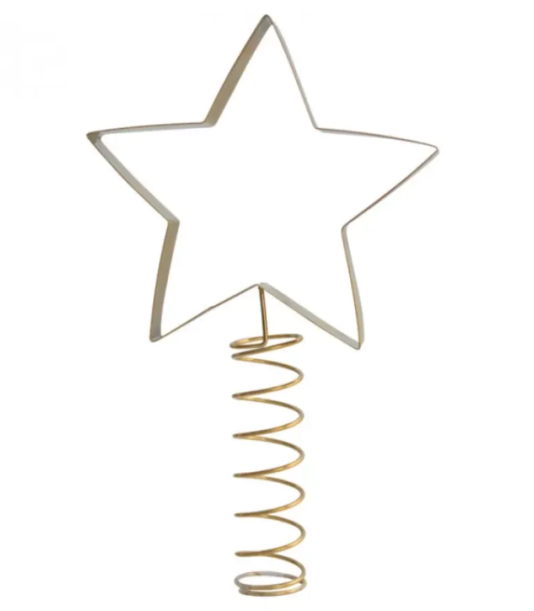 Cimier De Sapin 21 Cm, Etoile De Noël En Metal Dore.