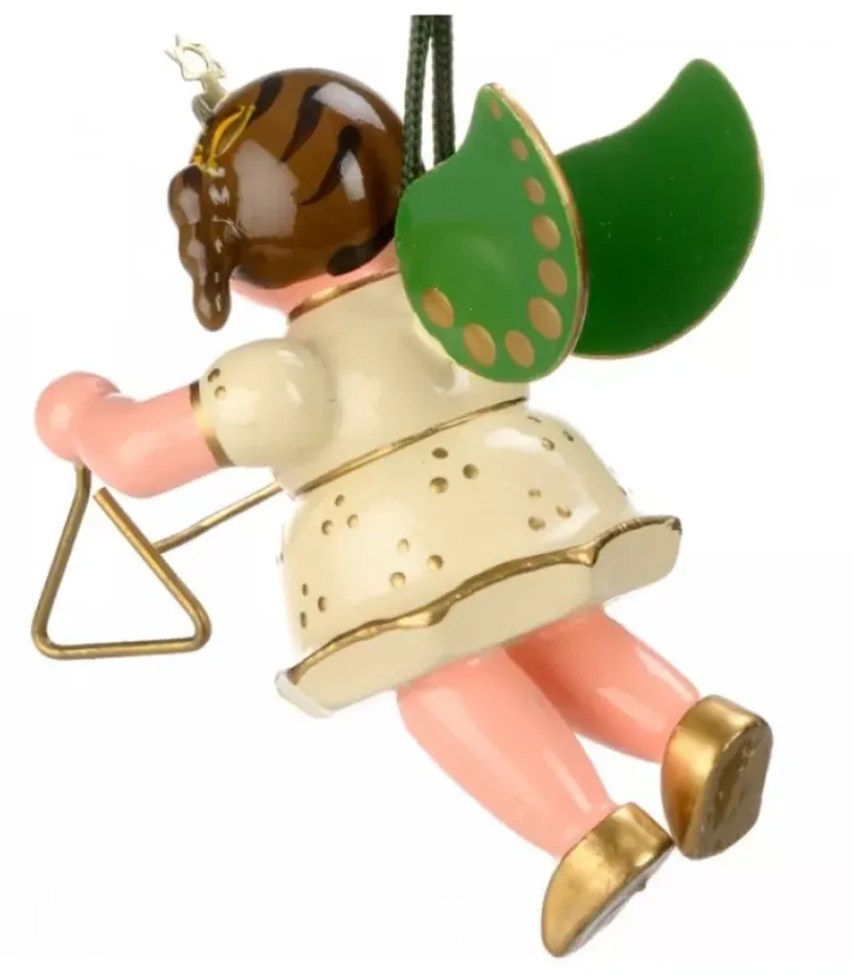 Ange En Bois Peint Qui Joue Du Triangle.