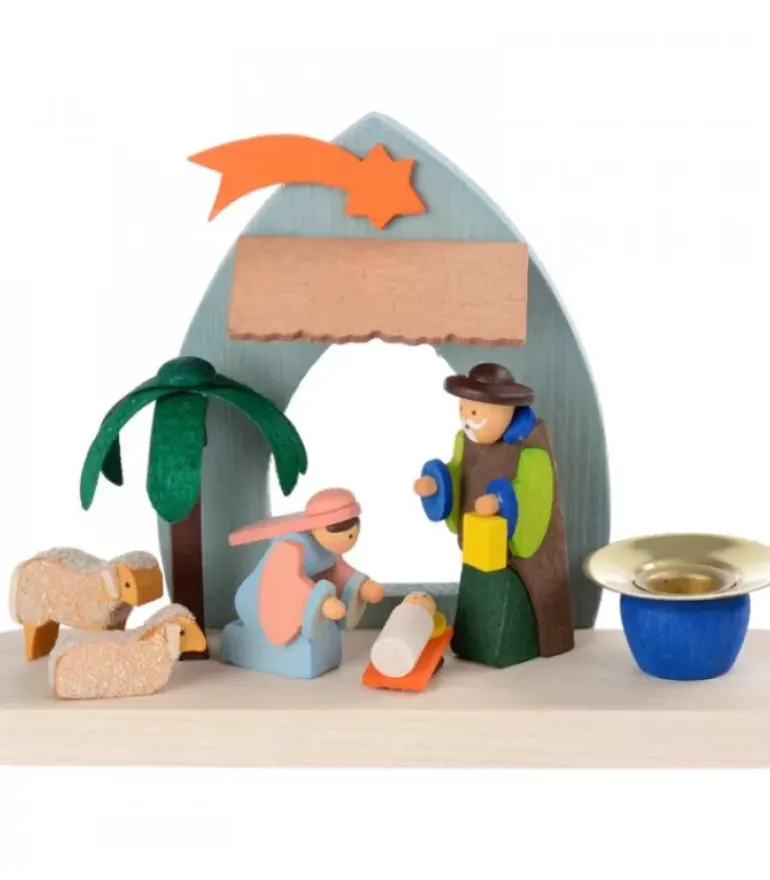 Petite Crèche Moderne En Bois Avec Un Palmier Et La Nativite