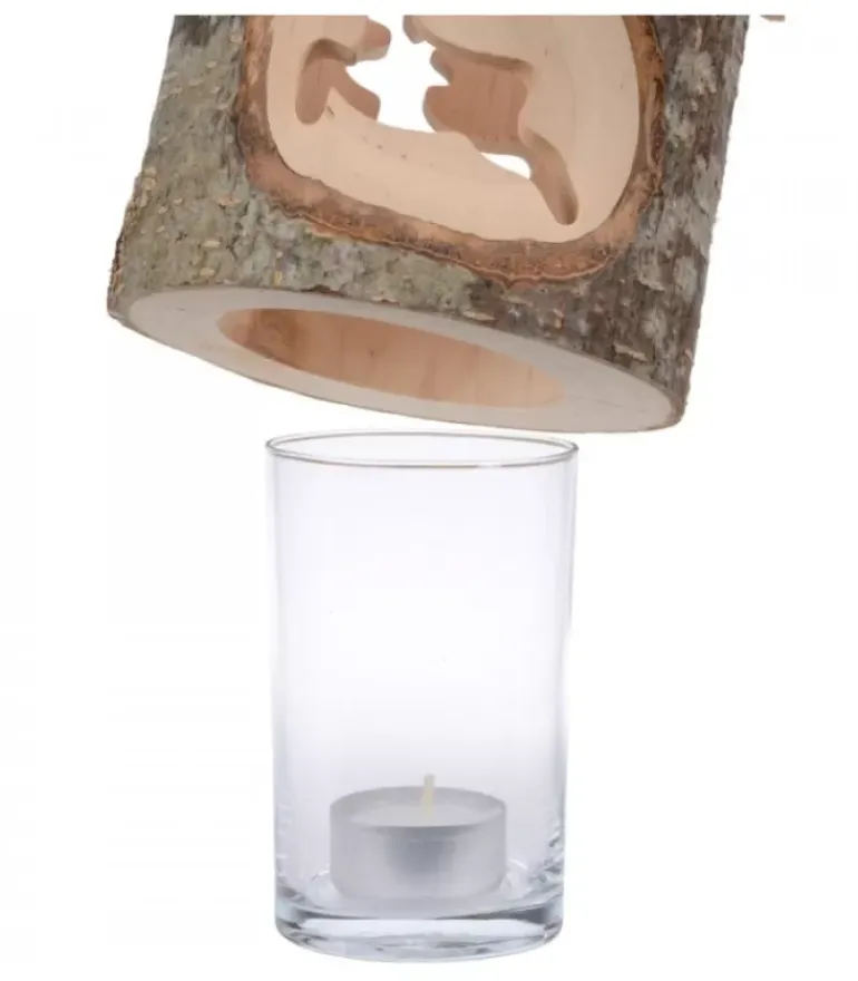 Photophore En Bois Avec 2 Motifs D’Un Renne Realise En Bois Cisele Sur Chaque Cote.