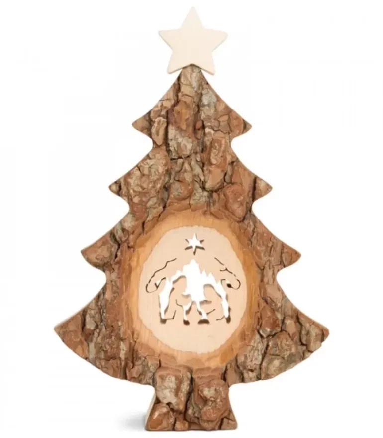 Crèche De Noël 13 Cm, Taillee Dans Une Ecorce De Bois, Motif Etable