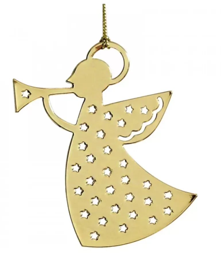Ange Avec Trompette En Metal Dore A Suspendre.