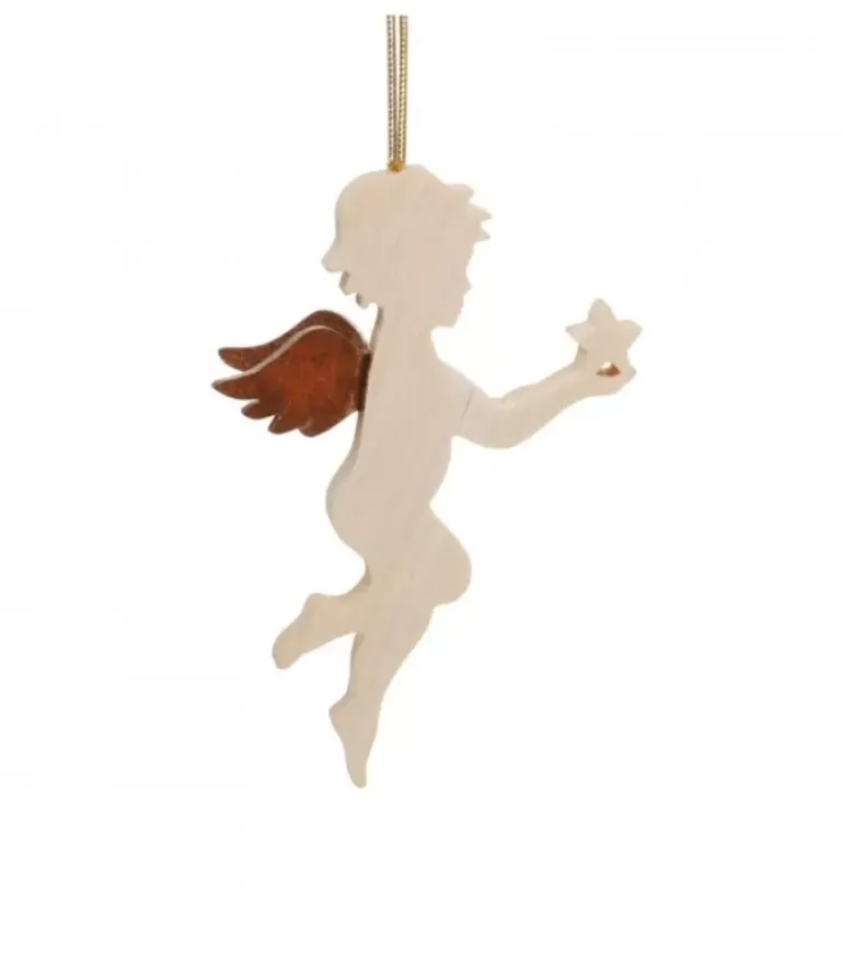 Petit Ange Décoratif A Suspendre, En Bois D’Erable, Tenant Une Etoile Dans La Main.