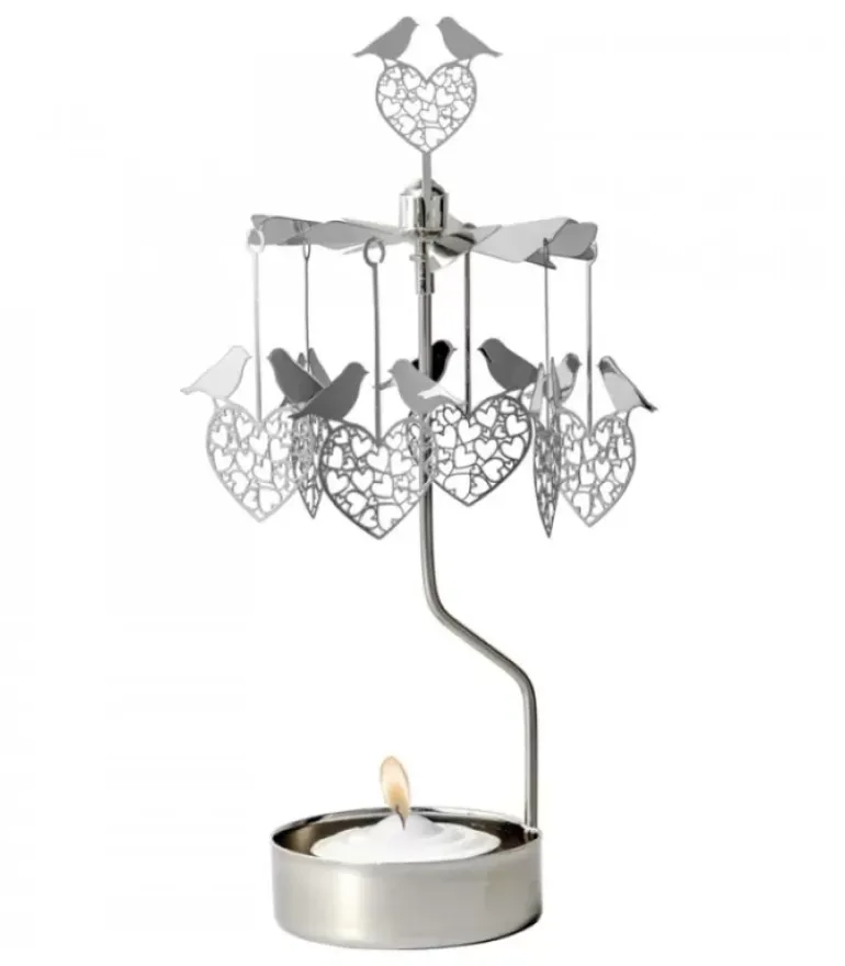 Bougeoir Carrousel Oiseau Amoureux En Metal Chrome.
