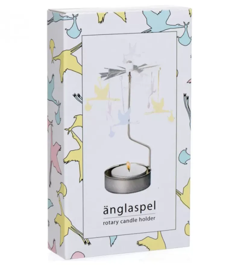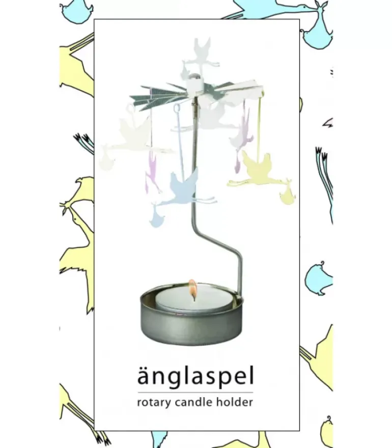 Bougeoir Carrousel En Metal Chrome Six Cigognes En Vol Apportant Un Bebe.