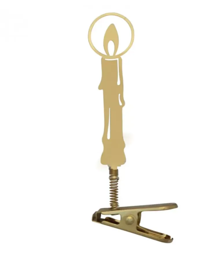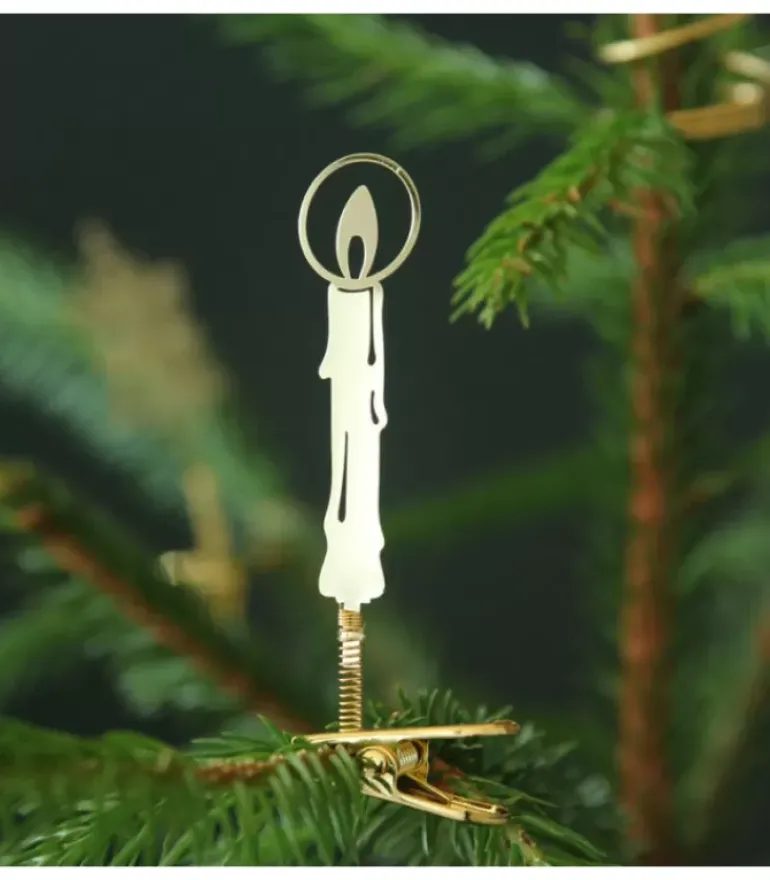 Bougie En Metal Dore A Clipser Sur Une Branche De Sapin De Noël.