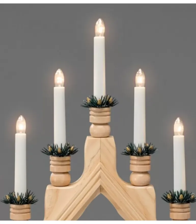 Chandelier Pyramide A Bougie Electrique Avec Décorations, Couleur Naturelle.