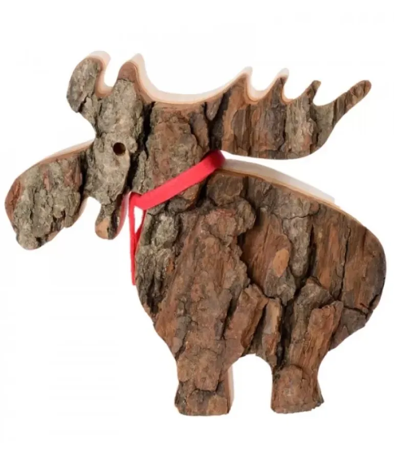 Figurine Elan Taille Dans De L’Ecorce De Bois.