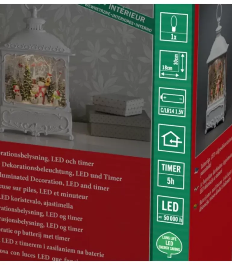 A L’Interieur Une Petite Pompe Brasse L’Eau Et Fait Virevolter Les Paillettes De Neige. Un Eclairage Led Eclaire D’Une Douce Lumiere La Scene.