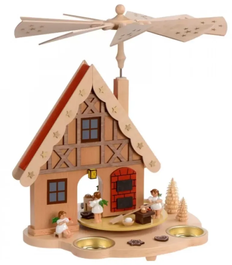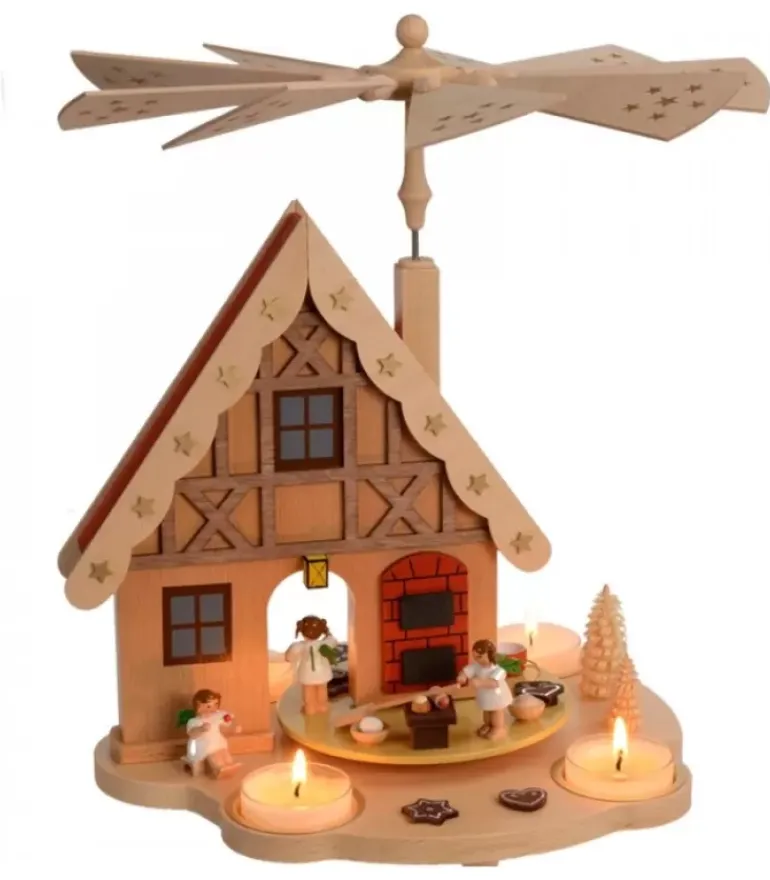 Superbe Weihnachtspyramid D’Allemagne A 3 Etages En Bois Naturel