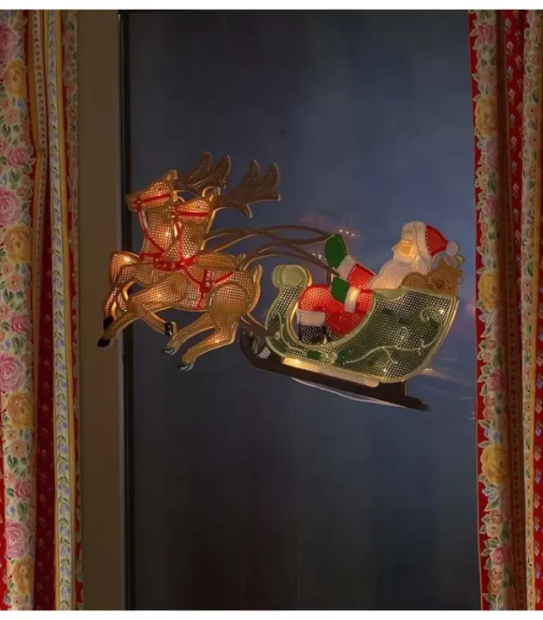Image De Fenetre A Led, Père Noël Lumineux A Suspendre Avec Rennes Et Traineau.