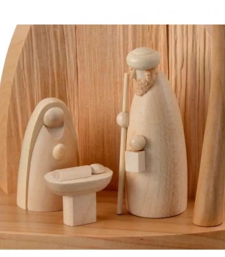 Petite Crèche De Noël Moderne En Bois, Avec Un Palmier.