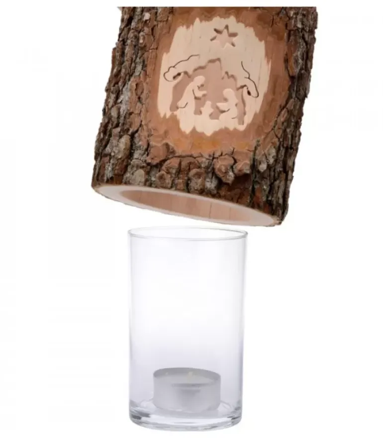 Photophore En Bois Avec Motif Crèche De Noël Et Etoile Realises En Bois Cisele.