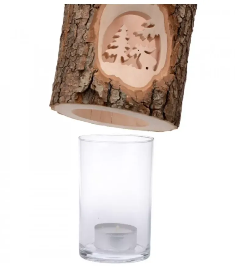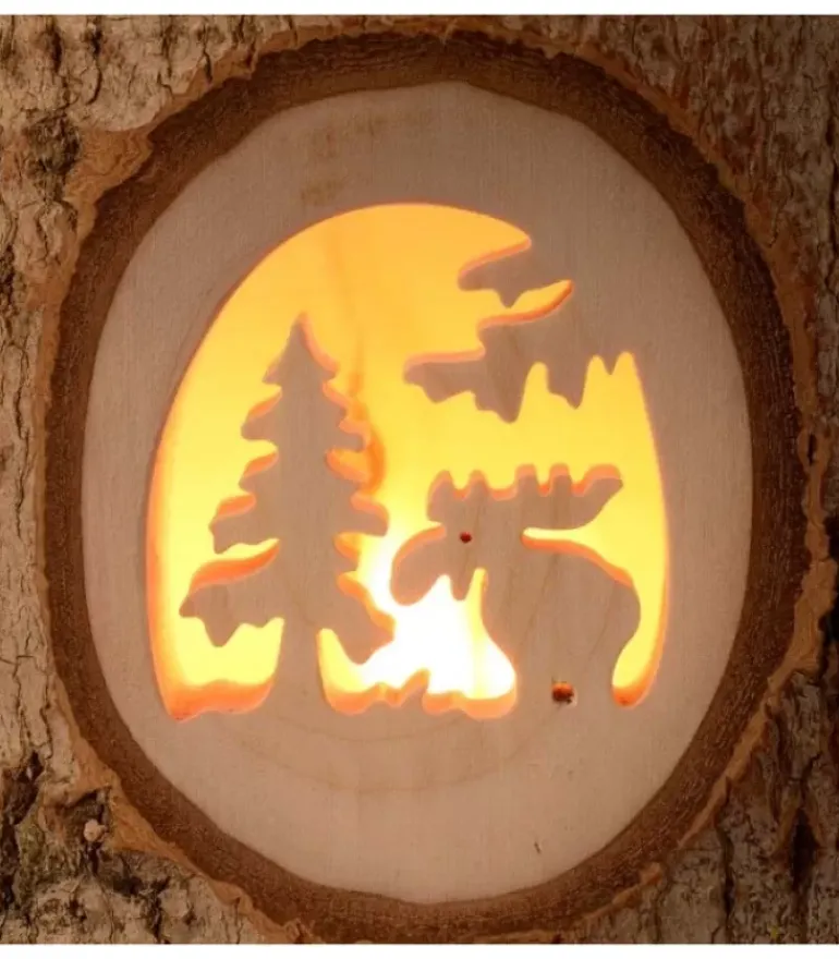 Photophore En Bois Avec Motif Elan Dans La Foret Realise En Bois Cisele.